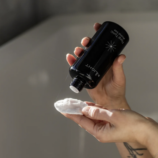 Ett flytande steg som appliceras efter rengöring för att återställa hudens pH och förbereda huden för efterföljande produkter. Det hjälper till att lugna, återfukta och kan behandla specifika behov som porer eller rodnad. Applicera ansiktsvattnet direkt med händerna för att trycka in fukten i huden, eller med bomullspads för en mer rengörande effekt. Ett bra ansiktsvatten kan vara skillnaden mellan obalanserad hud och en hud som känns fräsch, återfuktad och mottaglig för resten av dina produkter.